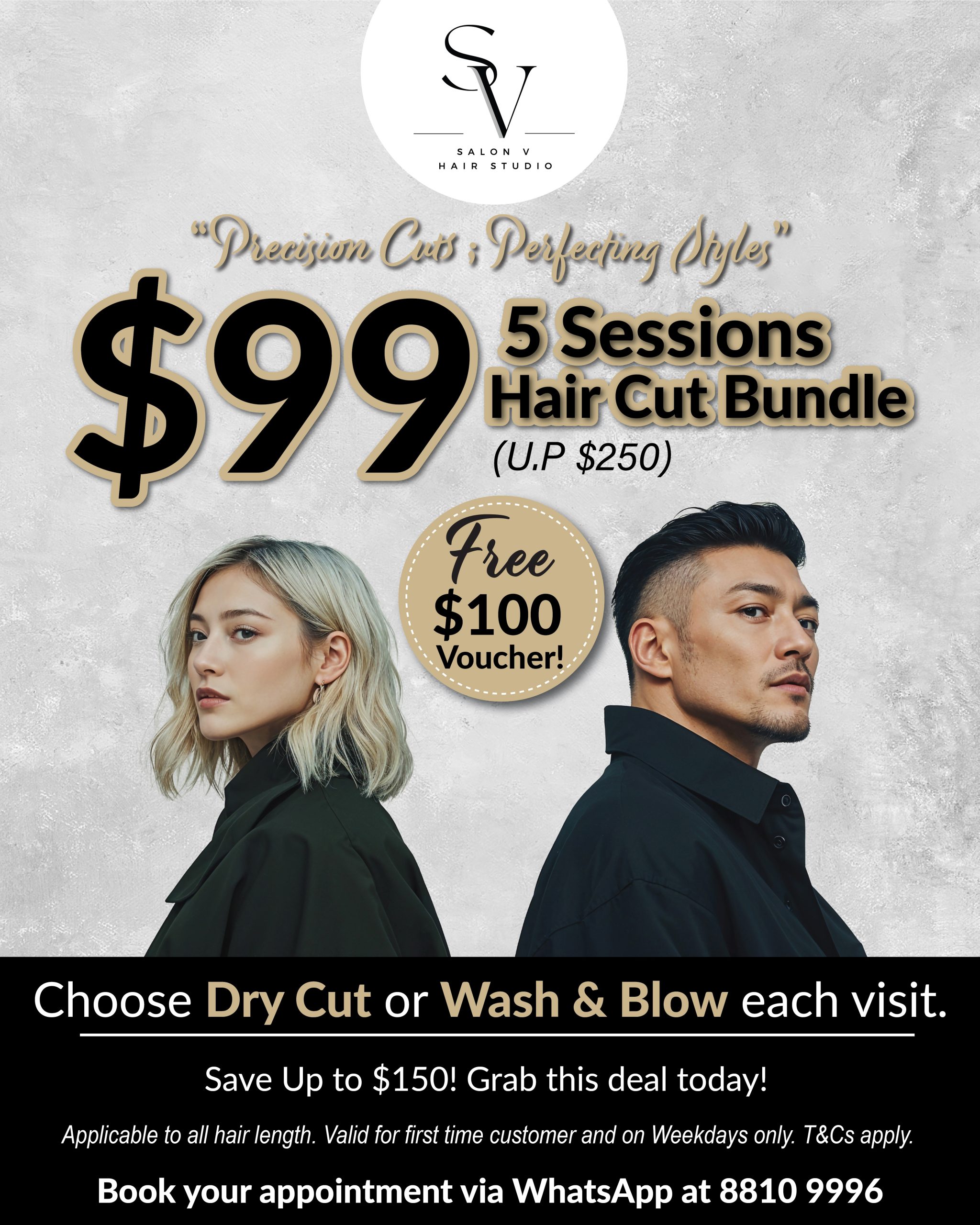 Say hello to fuss-free grooming with our $99 Hair Cut Bundle — enjoy 5 sessions (U.P $250) and receive a FREE $100 voucher on top! 😍